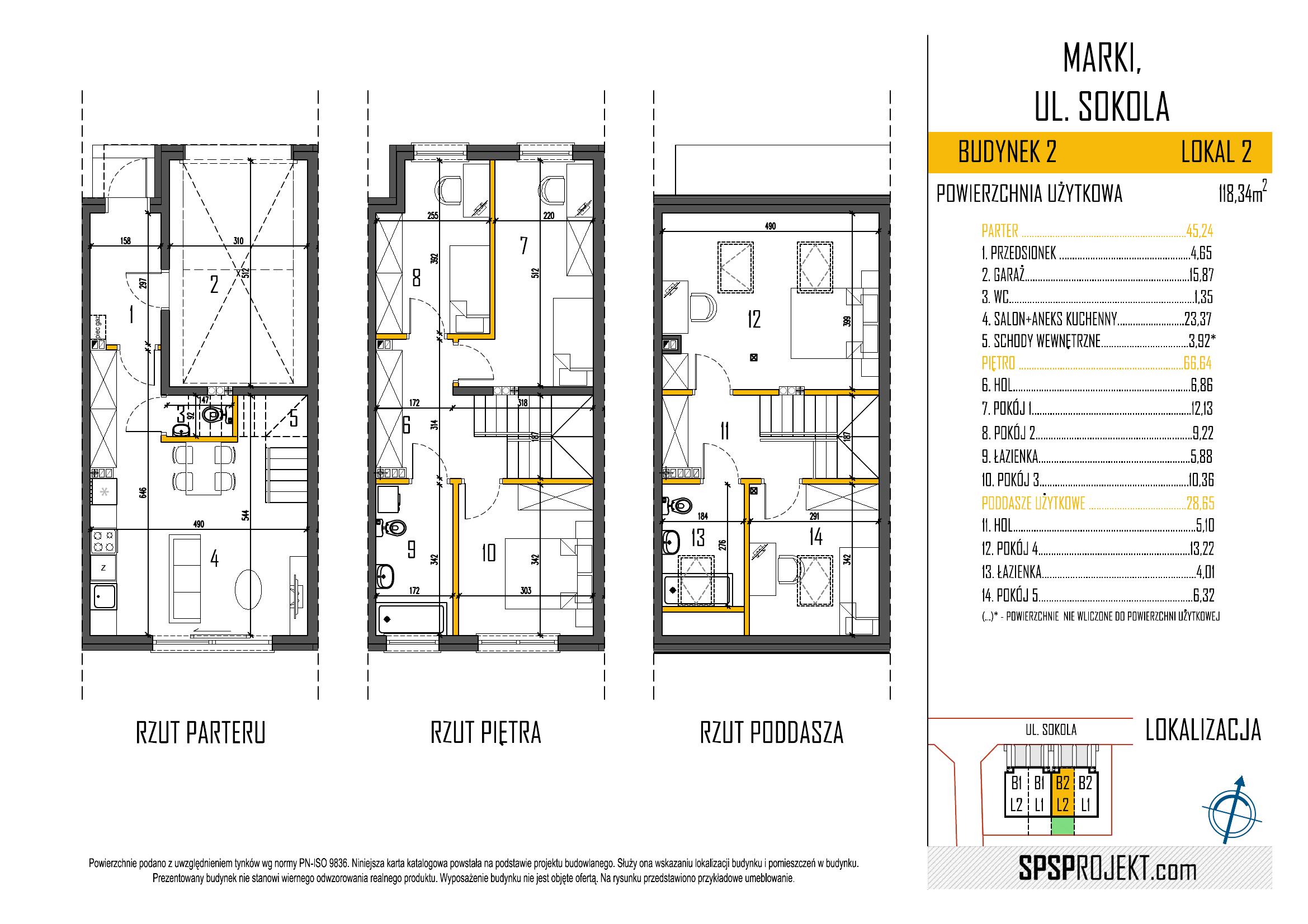 ŁĄCZNA PROJEKTOWANA POWIERZCHNIA UŻYTKOWA LOKALU WYNOSI 118,34 m2
